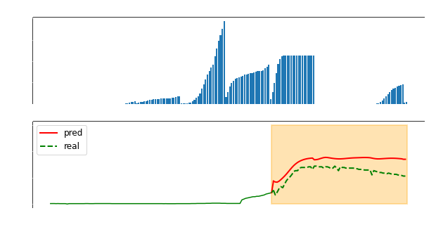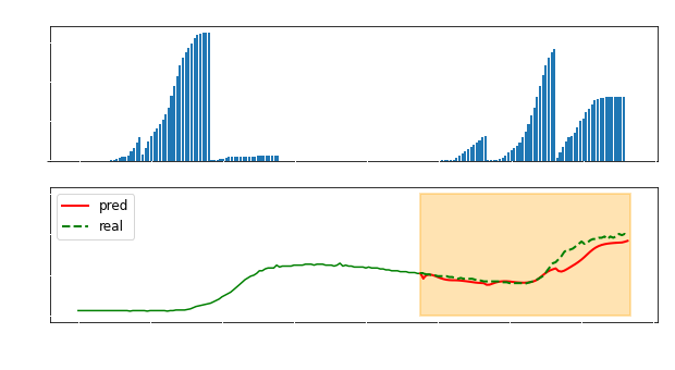 Given the fact that spatial resolution of catchment-wide meteo data is significantly coarser than multispectral data, the project team adopted so-called sequence-to-sequence lumped LSTM (Long Short Term Memory) deep learning model and relied on an hourly precipitation and runoff data to carry out rainfall runoff modelling. The model inputs consist of previous runoff, weather information (including precipitation and temperature) as inputs, and also future weather information to forecast the runoff, over the horizon of 72 hours. Results of the trained machine learning model are remarkably good as illustrated below . The red line denotes the forecasted runoff and green dotted line is the observed runoff.